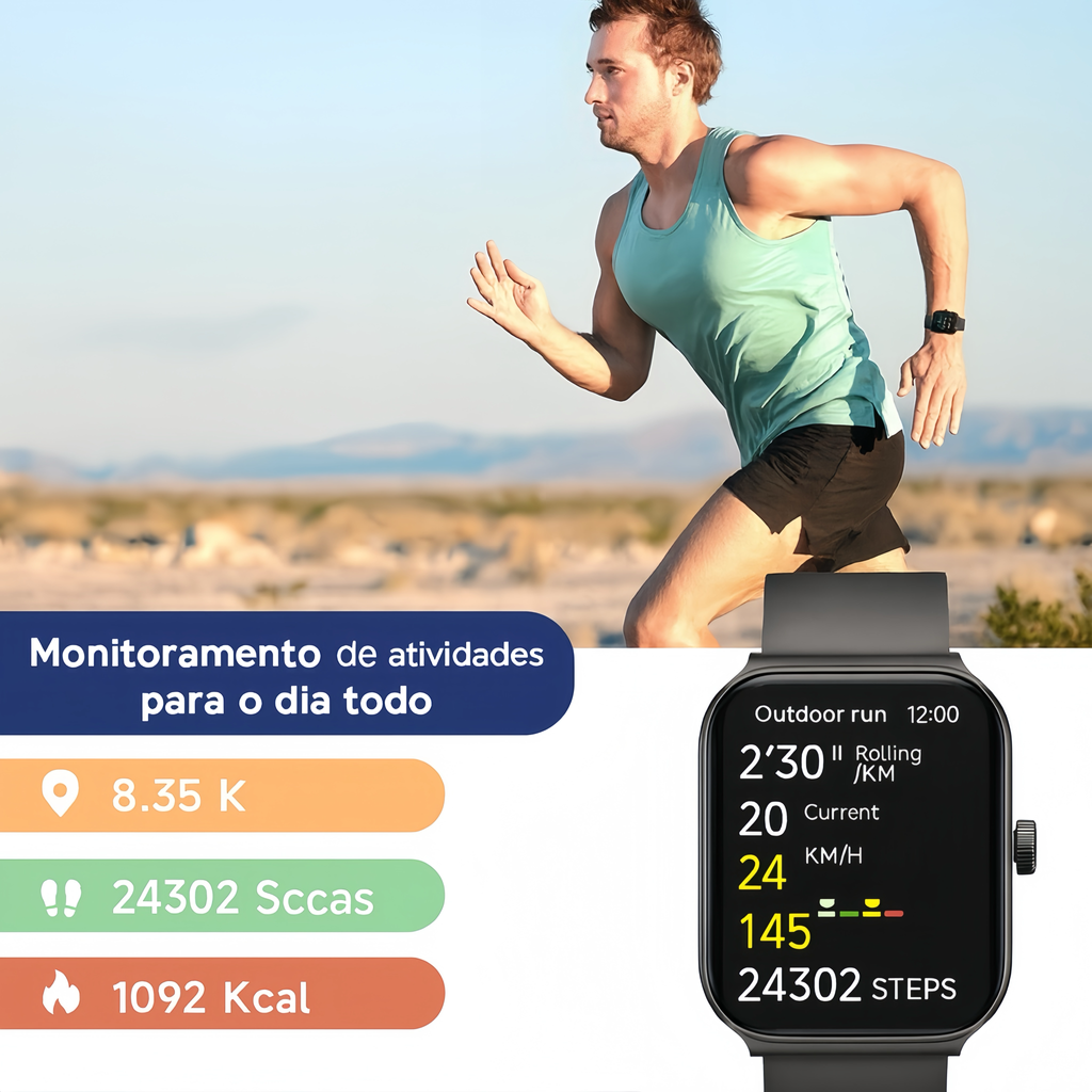 Com mais de 100 modos de esporte, incluindo corrida, ciclismo e dança, o Relógio 5N suporta todas as suas atividades favoritas, mantendo-o motivado para alcançar seus objetivos.