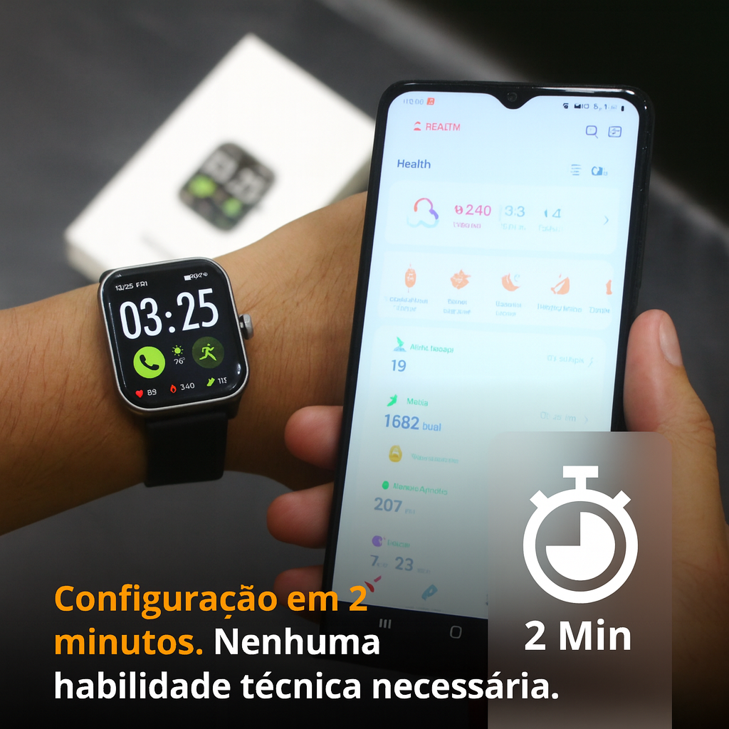 Ligação HD Sem Fio Mantenha-se Conectado com Facilidade Faça chamadas diretamente no seu pulso, sem o incômodo de pegar seu telefone, conectando-se facilmente com seus entes queridos.